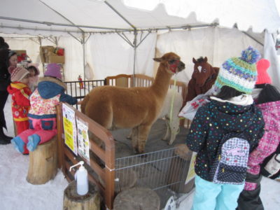「アルパカふれあいコーナー」でアルパカに触ることができます。(2頭来るよ!)