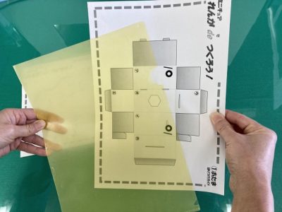 ファイルに台紙を挟み、ペンでなぞって線を引きましょう。(挟んだ方がずれにくいです!)