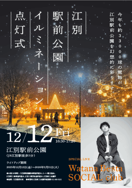江別駅前を明るく照らす、江別駅前公園イルミネーションの点灯式が行われます✨️