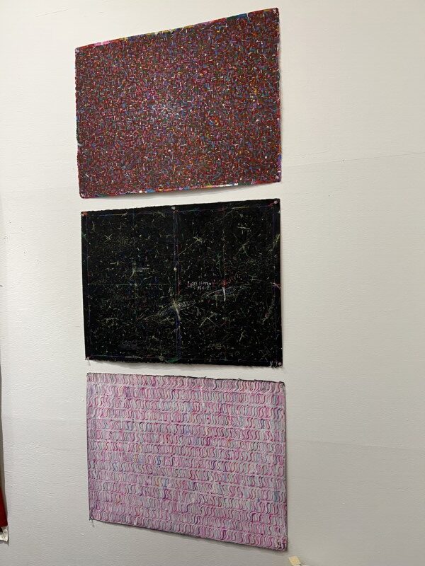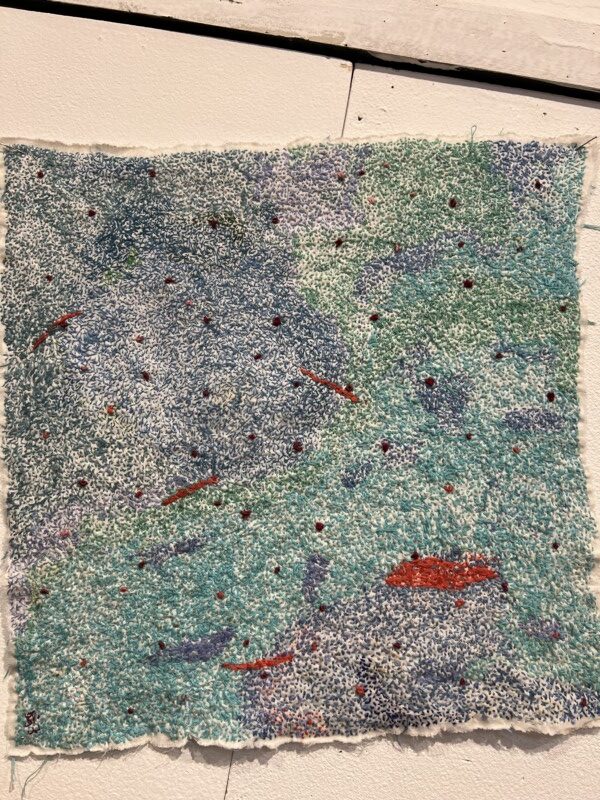布に糸で絵を描くように縫い上げられた作品の展示会です。